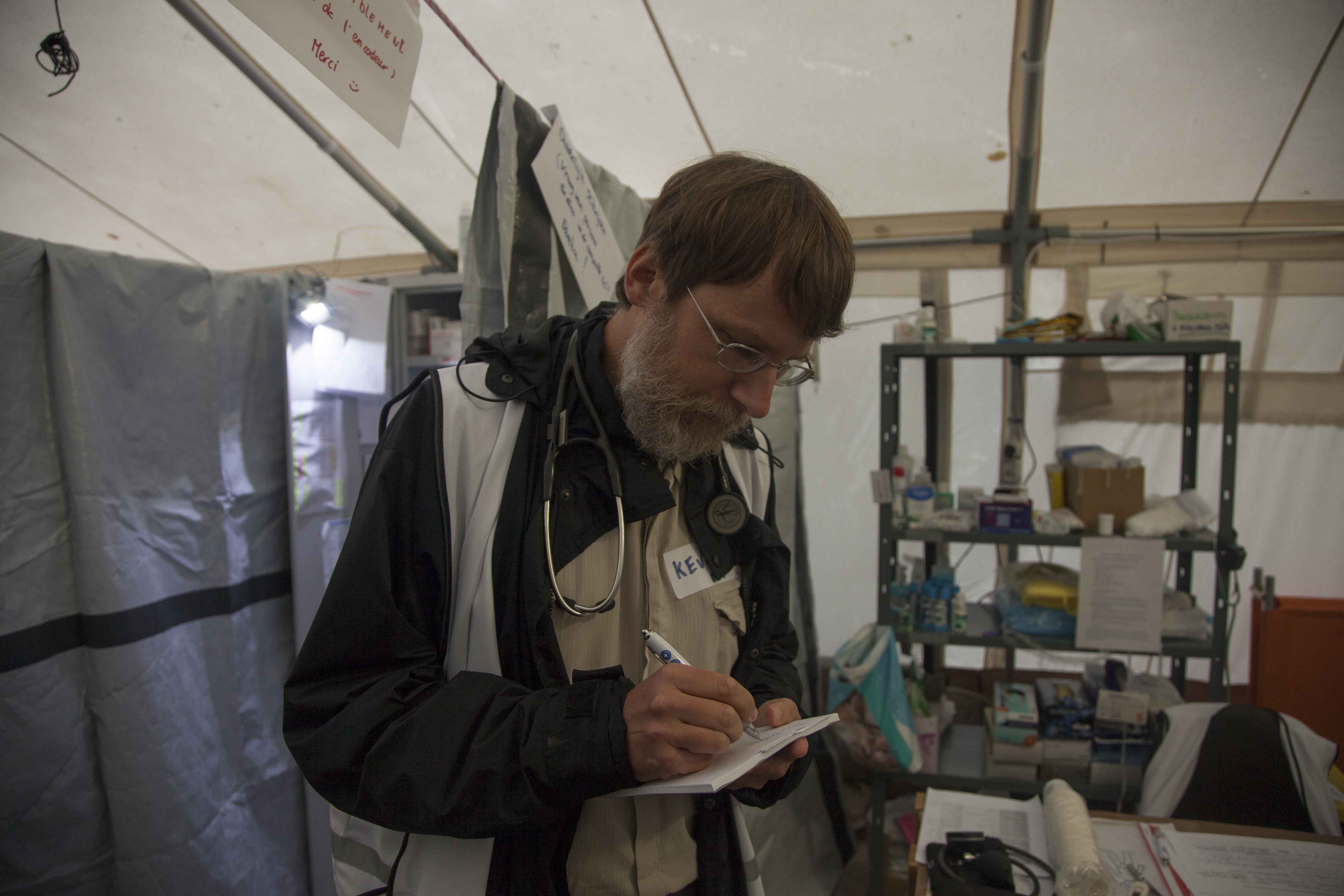 Kevin is arts in het Maximiliaanpark in het geïmproviseerde veldhospitaal van Dokter van de wereld. Hij vertelt dat de patiënten vooral last hebben van klachten aan de luchtwegen, maar er zijn ook allerlei andere kwalen en ziektes die dringende hulp nodig hebben.