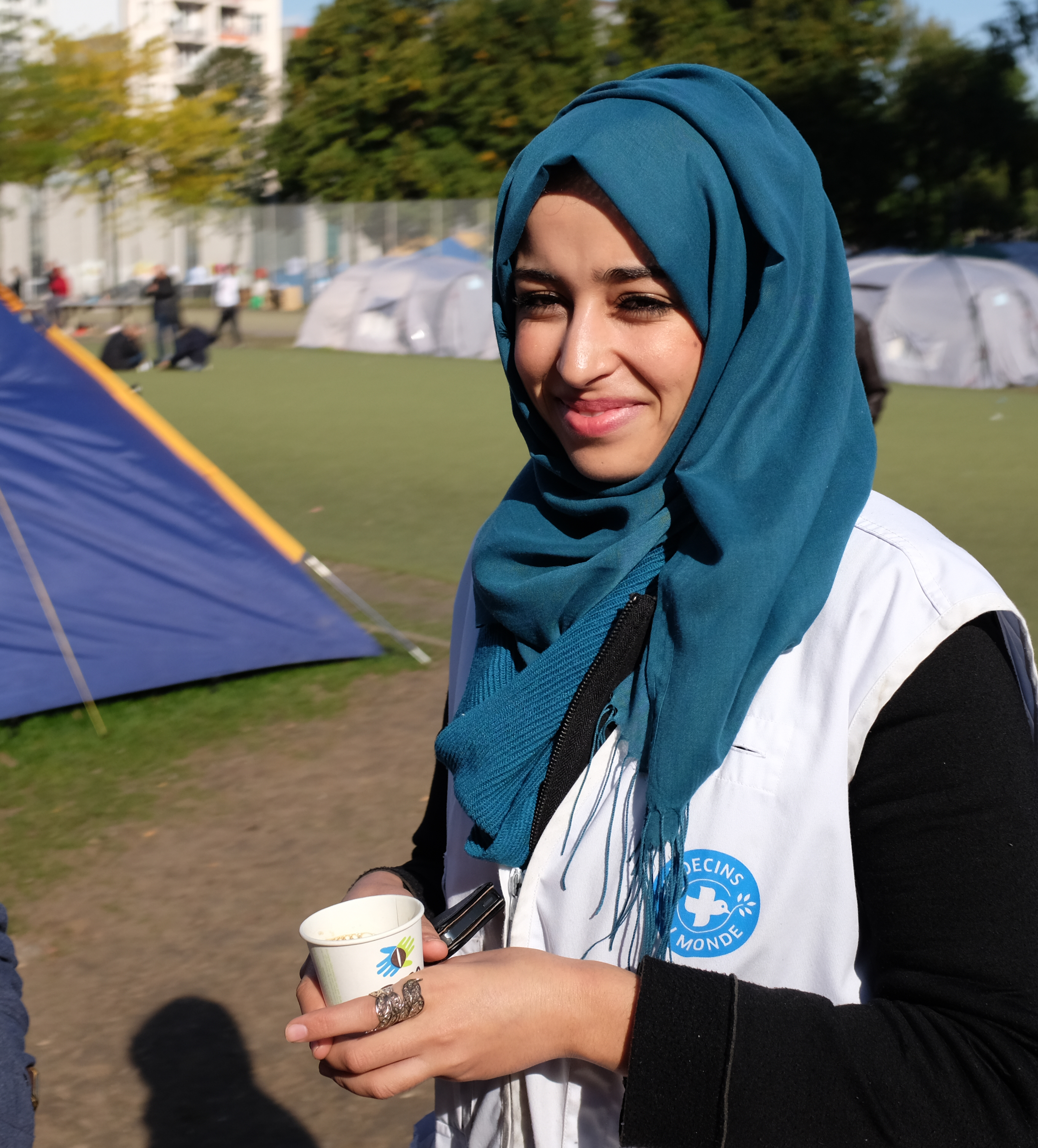 leila: ‘Ik zag een bericht op televisie over de vluchtelingen in het Maximiliaanpark. Al sinds ik klein ben kan ik mijn ogen niet sluiten voor de problemen van anderen. Ik kon me niet meer voorstellen om een toeristische vakantie verder te zetten. De mensen in het kamp zie ik als mijn broeders en zusters. Ik kwam hierheen en bood mijn hulp aan. Ondertussen ben ik al twintig dagen in het kamp. Ik vertaal sessies bij de psycholoog, begeleid vrouwen bij de gynaecoloog en help overal waar mogelijk. Zo voel ik me nuttig en waardevol. Ik blijf nog tot 6 oktober in Brussel om te helpen waar ik kan.’